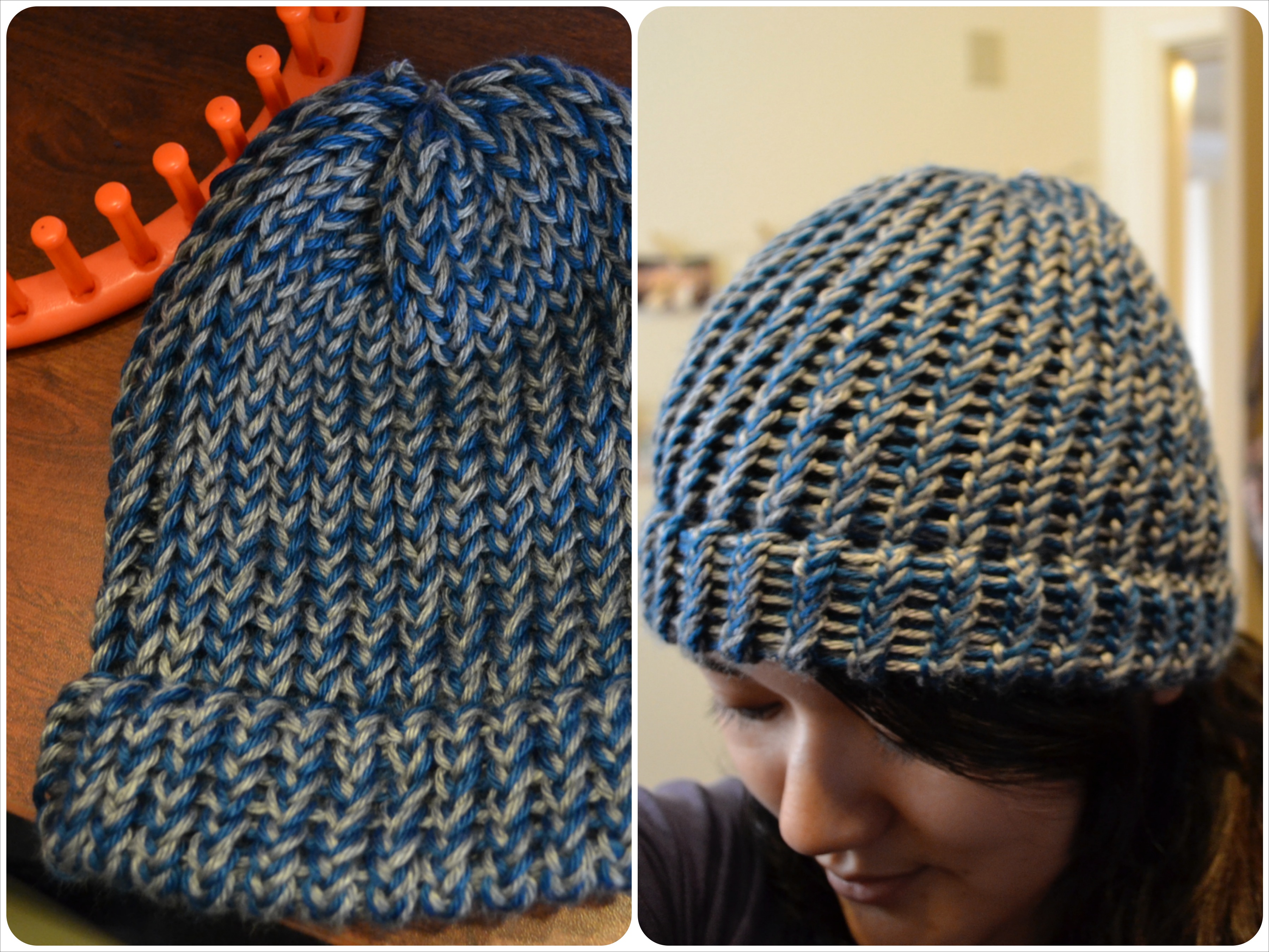 I often feel like grandmas are living vicariously through me. One of my hobbies is knitting. My favorite time to knit is while watching TV/movies or at the gym. Yup, you can see me on the elliptical machine, getting my sweat on … and also getting my knit on. Last summer, I discovered loom knitting, and it completely changed the way I knit. I realized what a huge time saver it was. It is also extremely easy to learn, and I’d highly recommend loom knitting for anybody who wants to start knitting and wants a fool-proof method. One of the perks of loom knitting is that I don’t have to count rows, which makes it great when I’m watching TV and am easily distracted.