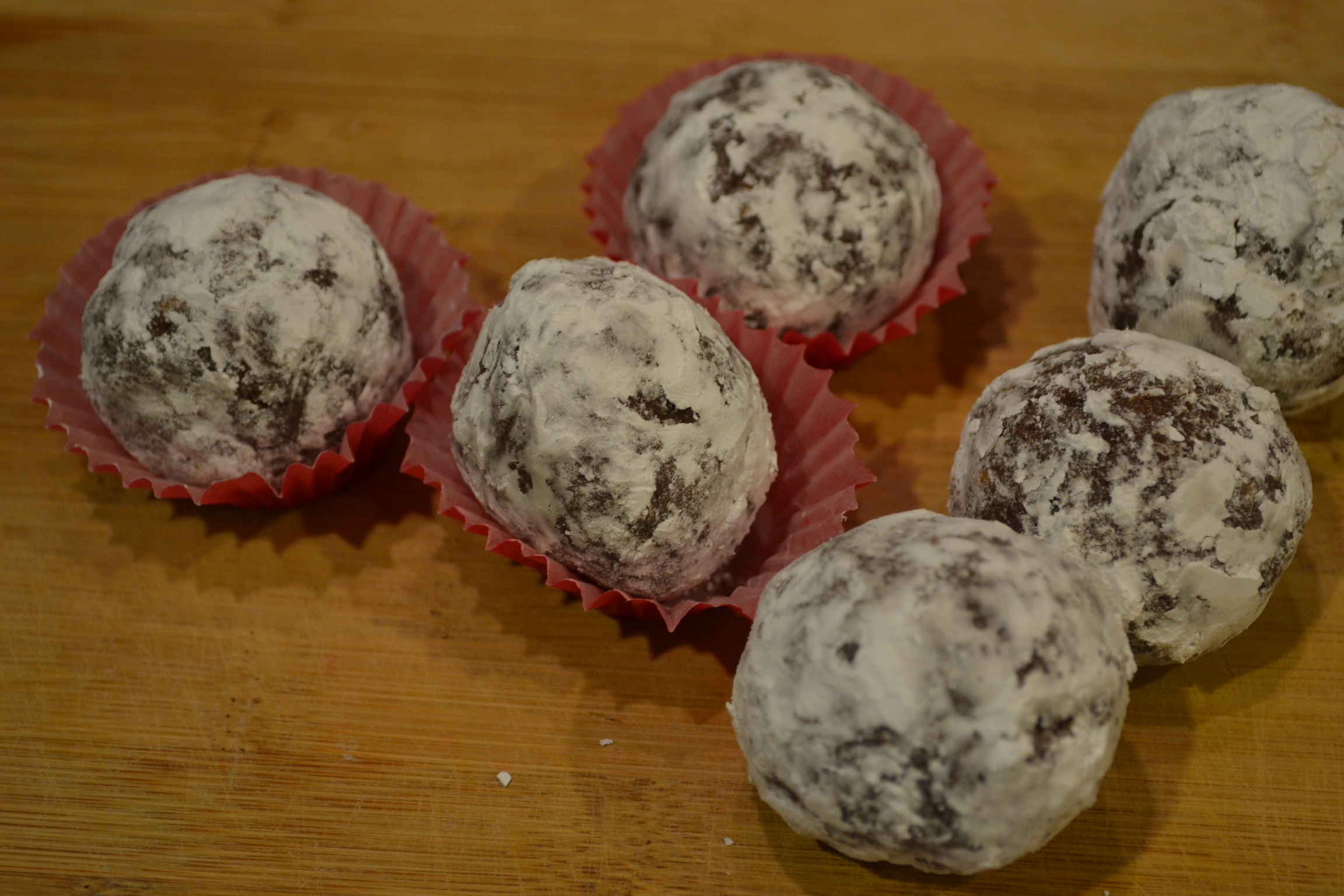 3. Using a tablespoon as a guide, scoop out dough and shape into balls. Roll in powdered sugar or cocoa. Place prepared rum balls on a baking sheet for 1 hour to set. After, store the rum balls in an airtight container for 5-7 days. Enjoy!