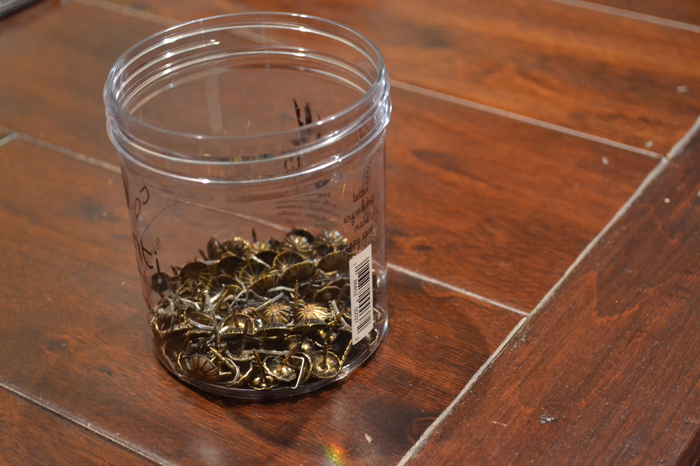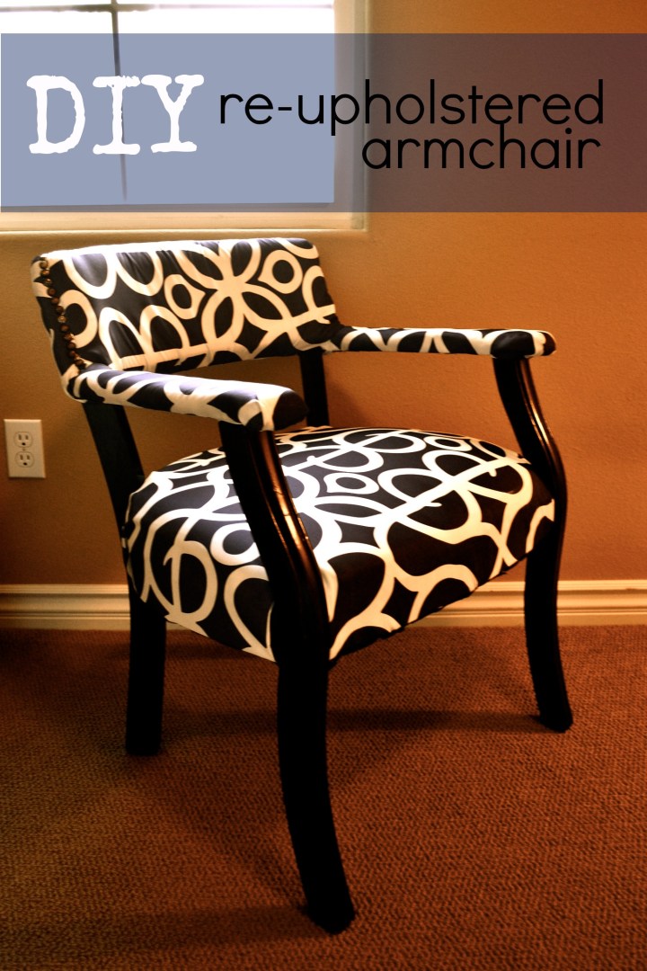 The old chair actually had nail trim on it that we saved. We ended up using some of it to cover up the staples we had on the top of the armchair.