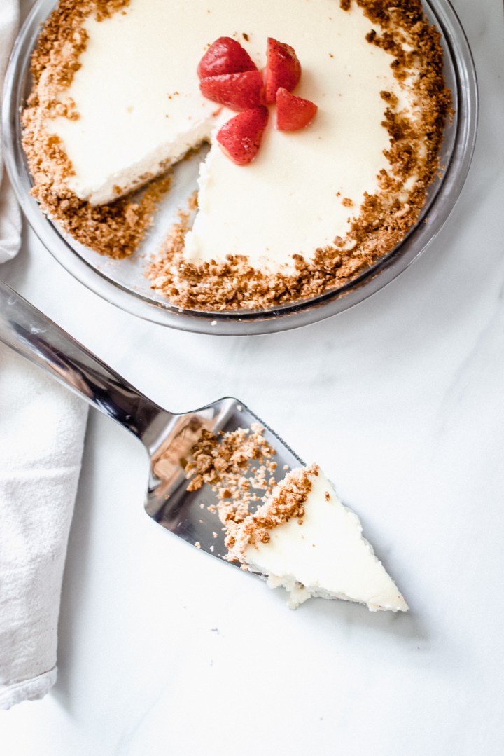 2. Pour into prepared graham cracker crust. Bake for 20-30 minutes. The edges should be completely set but the center should have a slight jiggle.