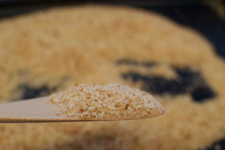 3. You can toss the breadcrumbs back in the food processor and pulse until your desired consistency. Let cool and store in an airtight container.