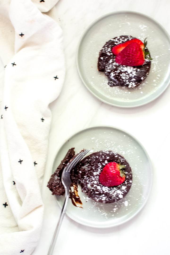 - Pour evenly into ramekins. Bake in preheated oven for 7-9 minutes. (The top should be just set and when you shake the pan there should be a slight jiggle). Let cool for a couple minutes. Turn out to serving plates. Serve with fresh fruits or ice cream.