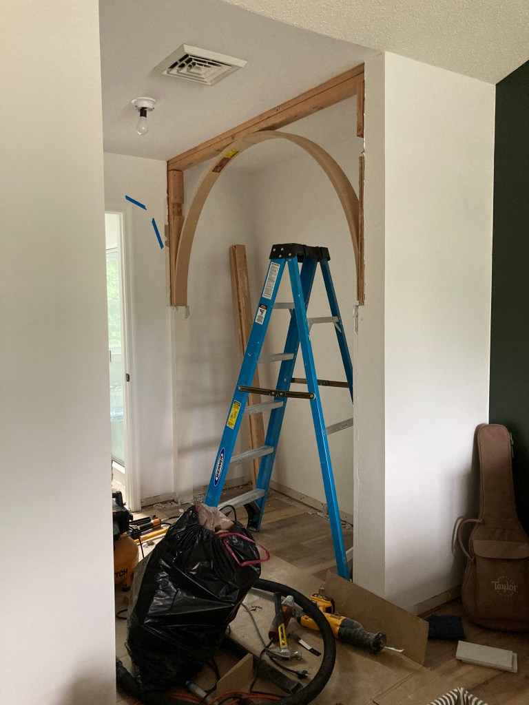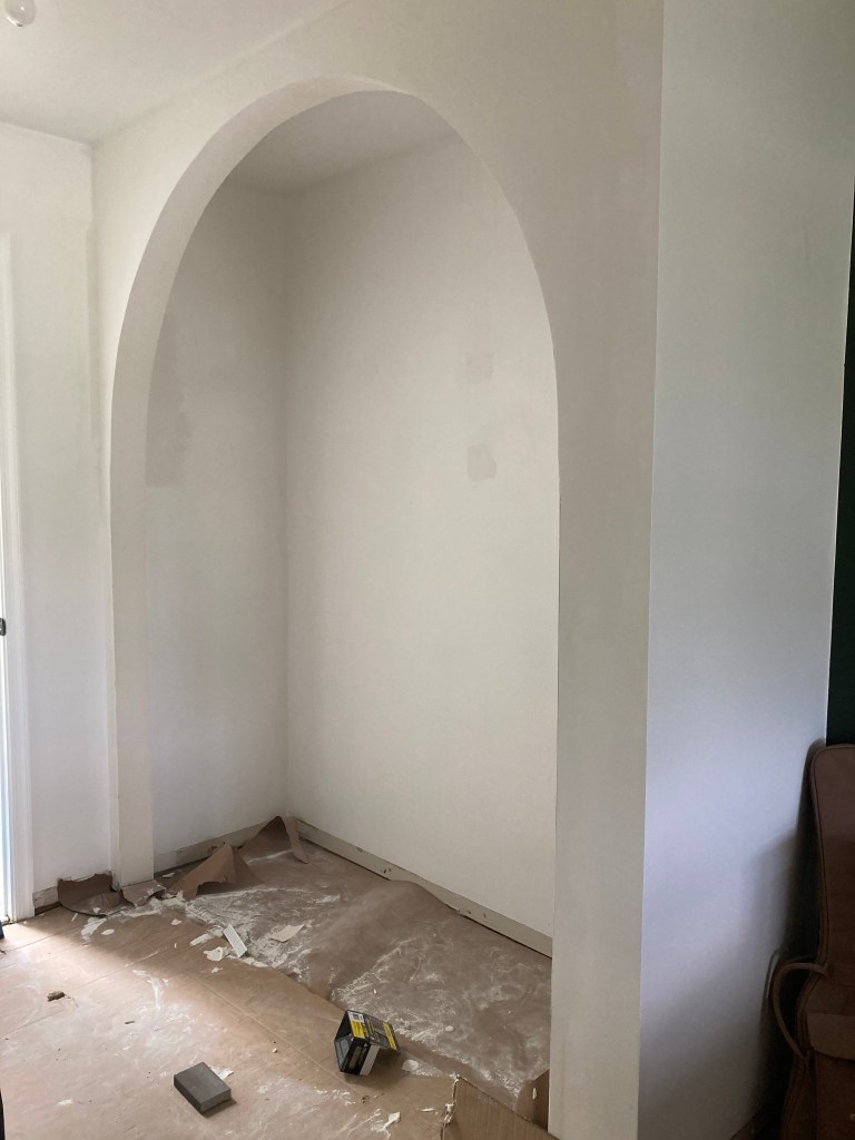 I ordered a custom arch from Archways & Ceilings and got to work. Since I wanted as much height as possible, I removed the header before attaching the arch. I didn’t expand the width of the opening at all, since I liked how I have a little nook of about 5 inches on both sides, as it could serve as a home base for the curtains.