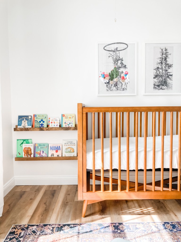 I also built a couple simple art ledges for baby books to the left side of the crib.