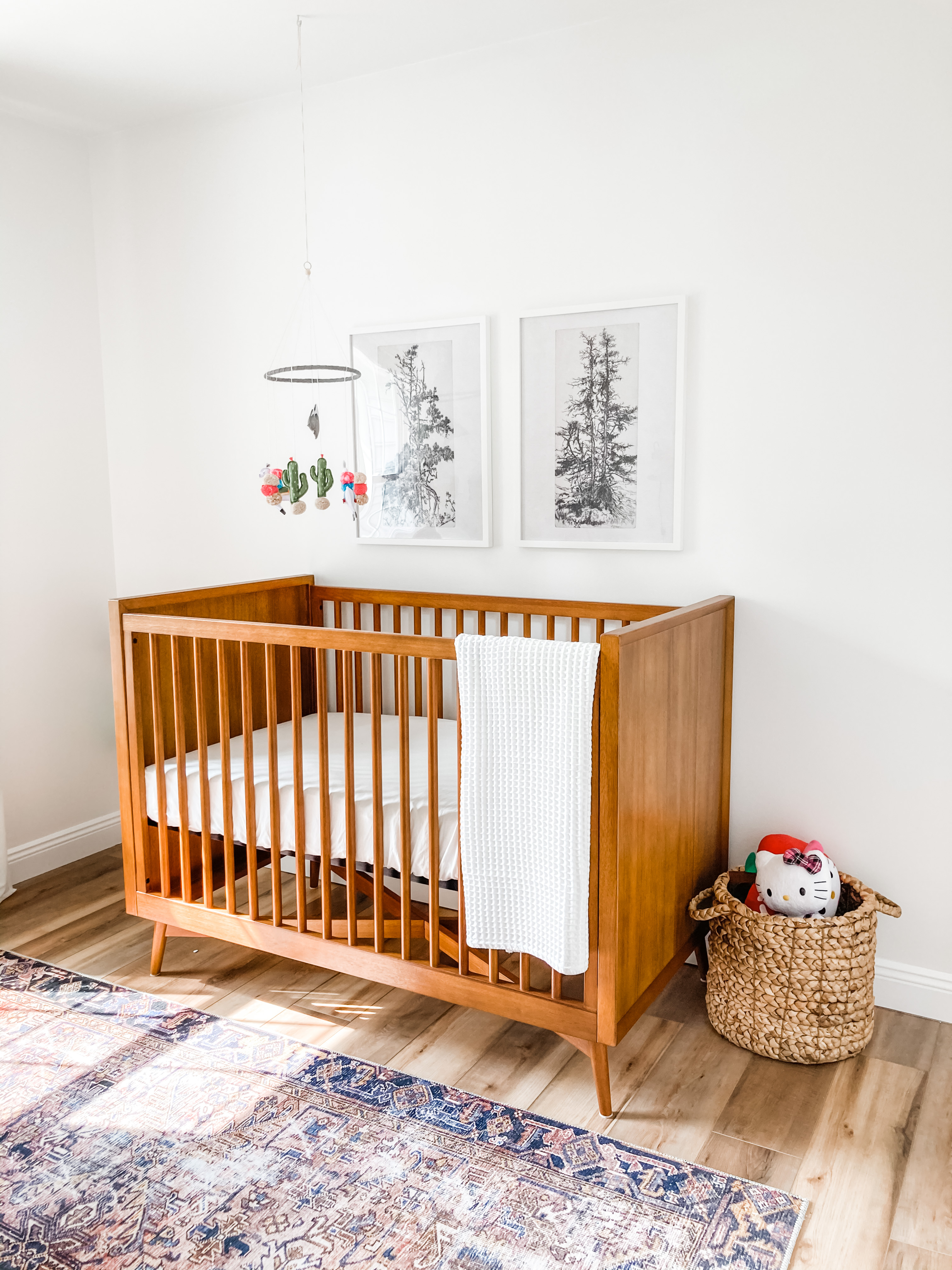 In our new house, which we have lovingly dubbed Squirrel Estate, we are fortunate enough to have 4 nice-sized bedrooms. One is our primary suite, one is our office, one is our guest room, and one room served as a multi-purpose room for the (almost) 2 years that we’ve been here. We’ve always known that one day, it would become a nursery. But in 2019, we just didn’t know when that day would be. So for the first year, it was just a dumping ground for all construction debris upstairs. When we got a dumpster and threw all the debris out the window (literally!), we decided to “finish” up the room. We gave it a fresh new coat of paint, swapped out flooring to match the rest of the house, and gave it new baseboards.