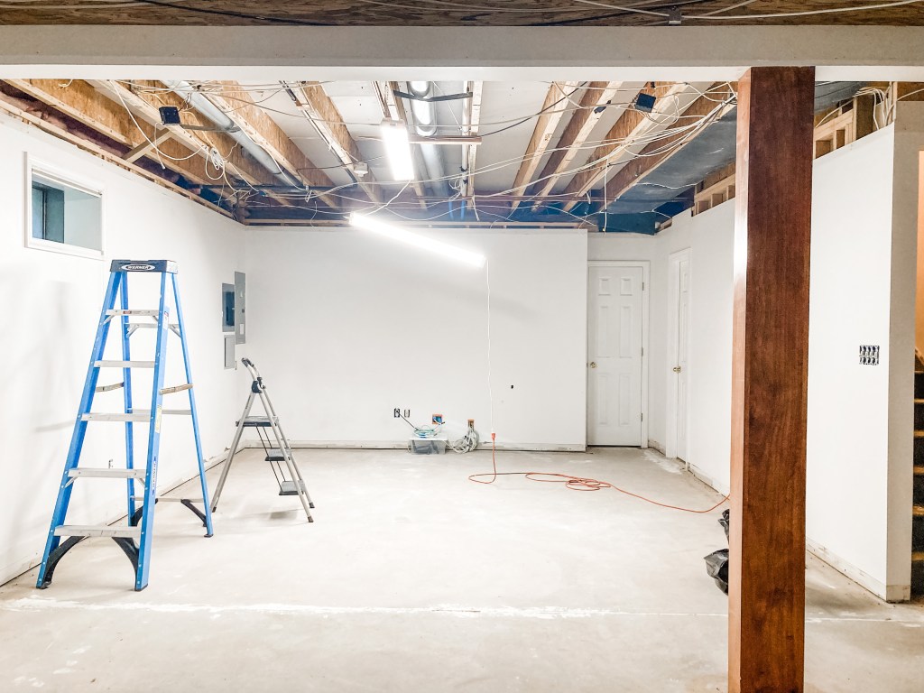 This post has been a long time coming, and I’m so excited to share some progress with our basement! Our house has a pretty generous basement space, with a little over 600 sq. ft. It feels a lot bigger than that because it’s basically one large open L-shaped room. It also has a under-the-stairs closet, a small half bath, a water meter closet, and a utility room.