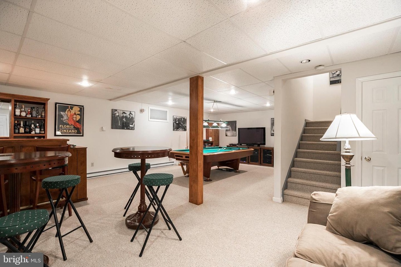 The previous owner was a single guy, so he definitely made the basement his little man-cave/bachelor hangout zone. He had a sports bar set up with the wet bar and TV, and he also had a large pool table that took up half the basement.